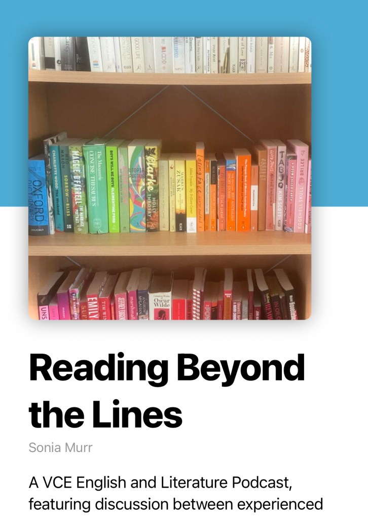 Thank you to my students (Kate M. Joanne L. and Oli M) for being involved as I pulled them out of their study session and bribed them with chocolate, but also to my colleague Sonia Murr for editing and publishing on her podcast Reading Beyond the Lines https://readingbeyondthelines.buzzsprout.com/ we are having a heap of fun producing this.